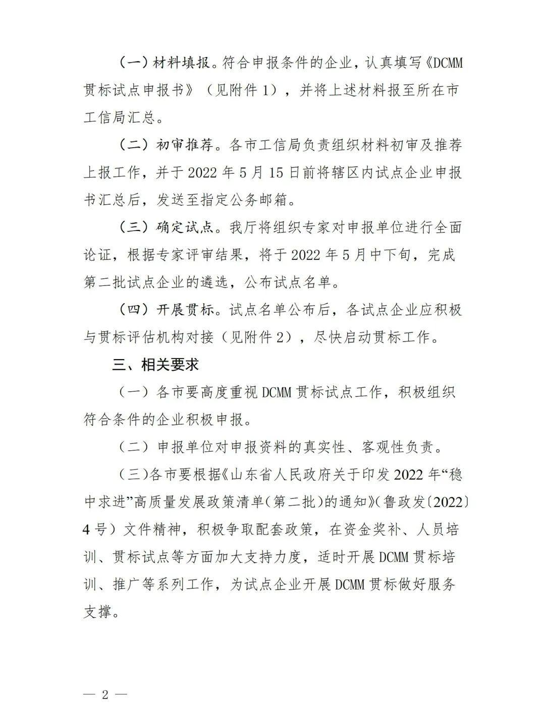 山东省工业和信息化厅印发了《关于开展2022年度第二批DCMM贯标试点申报工作的通知》,为深入推广《GB/T 36073-2018 数据管理能力成熟度评估模型》(以下简称DCMM)国家标准,不断激发数据要素潜力,规范数据资源管理,提升数据管理能力,夯实数字经济发展基础,重点打造一批DCMM贯标示范企业。